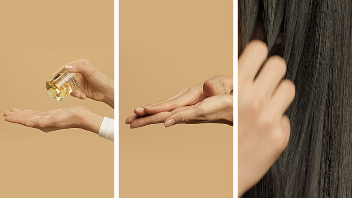 乾髮: 塗抹或輕抓於髮中至髮尾,提升柔順與亮澤。
