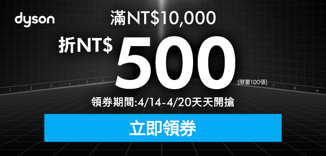 *折價券僅可適用於Dyson官方商城shop.dyson.tw中,其他通路恕不適用。