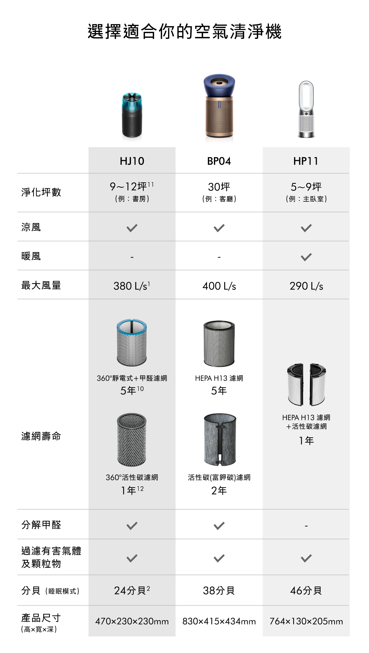 2根據Dyson數據,機器於睡眠模式運行、距離機器2公尺處測得聲壓級噪音為24分貝。實際因使用距離與環境而有差異。