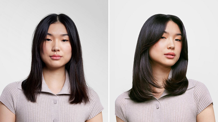 塑造滑順直髮。利用康達氣流隱藏毛躁。6
