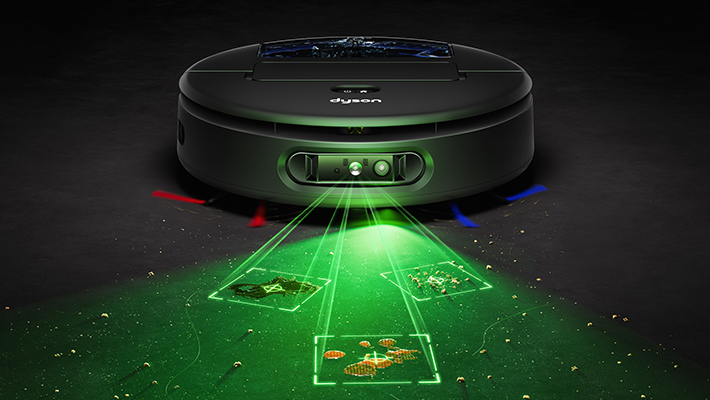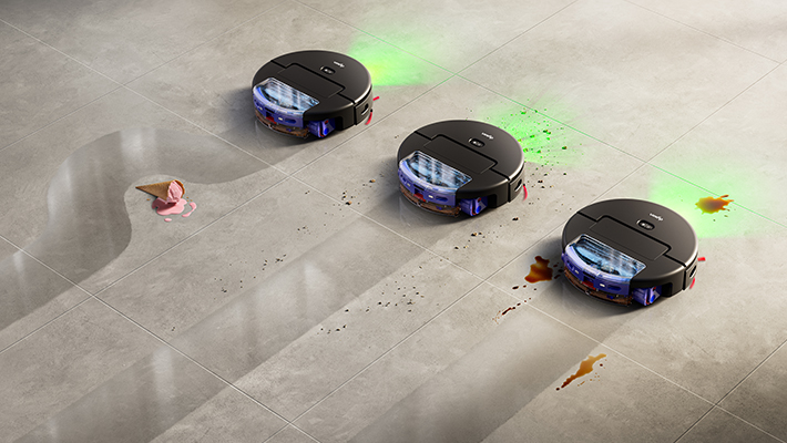 機器人搭載經典綠光並結合透鏡光源折射,即便在低光源環境也能清楚識別地板髒污、灰塵。