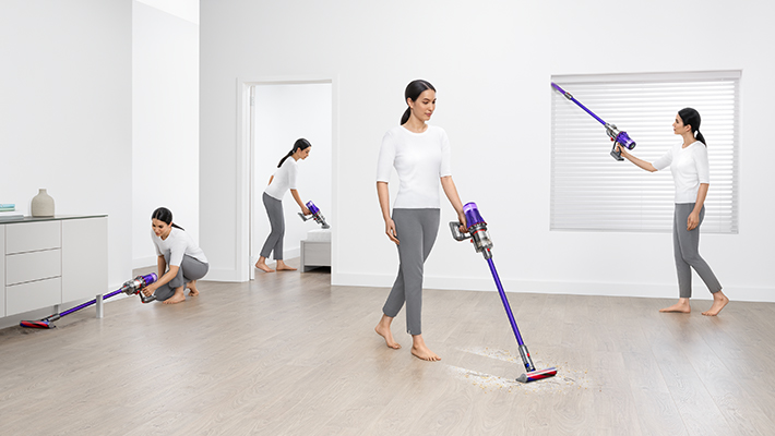 Dyson Digital Slim Origin™ 輕量無線吸塵器可輕易從直立式吸塵器轉換成手持吸塵器,執行以往需要三部獨立產品才能應付的一系列任務。