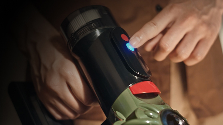 不需緊握啟動鍵。 您可以在越過障礙物時換手,使清潔更輕鬆。提供 3 種吸力模式選擇:節能、中、強效。